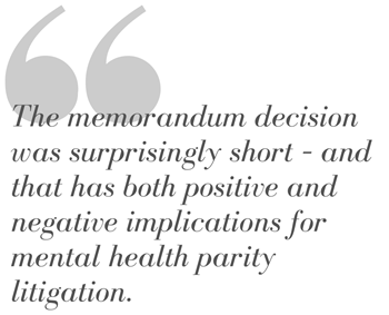 The United States Court of Appeals for the Ninth Circuit recently released an unpublished memorandum decision in the landmark mental parity case of Wit v. United Behavioral Health. In this decision, the Ninth Circuit reversed the district court’s order requiring UBH to reprocess more than 60,000 claims that had initially been denied for not meeting UBH’s medical necessity guidelines. The memorandum decision was surprisingly short – and that has both positive and negative implications for mental health parity litigation.